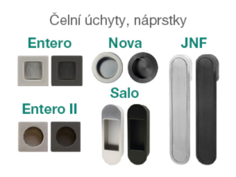 Posuvné dveře do pouzdra se mohou zasouvat do stavebního pouzdra celé, ale je nezbytné do hrany dveří doplnit náprstek - čelní úchyt, který umožní snadné vysunutí dveří. Případně náprstek nechat instalovat do hrany tak aby nevyčníval přes hranu dveří.