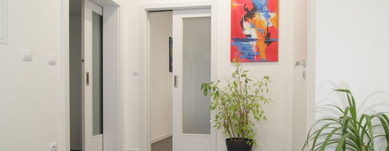 Bílé posuvné dveře do pouzdra rozzáří každý interiér, a to jak klasický, tak vysoce moderní. Takové dveře jsou totiž oblíbené pro jejich schopnost opticky zvětšit a prosvětlit místnost, což je ideální pro menší prostory nebo pokoje s menším množstvím přirozeného světla. Tyto posuvné dveře se elegantně zasouvají do pouzdra ukrytém ve stěně, což šetří místo a zároveň nabízí jednoduchý a čistý design. Úspora prostoru je obzvlášť výhodná výhodná v prostorách, jako jsou malé byty či úzké chodby.