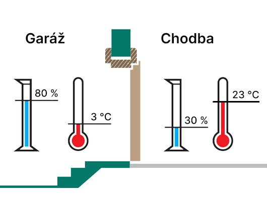 KLIMA III Rozdíl teploty cca do 20 °C. Rozdíl relativní vhlkosti cca do 50 %. Nejvyšší stupeň klimatické odolnosti KLIMA III je doporučován využít tam, kde dveře oddělují vytápěný a nevytápěný prostor -například garáže, sklepy, suterény, schodiště či půdy. Zajišťuje odolnost vůči teplotním rozdílům do 20 °C a rozdílům v relativní vlhkosti zhruba do 50 %. Součástí konstrukce dveří je hliníková fólie, proto je toto provedení možné jen u plných dveří. Vyrábíme je pro Vás v povrchových úpravách laminát, laminát plus, laminát real.